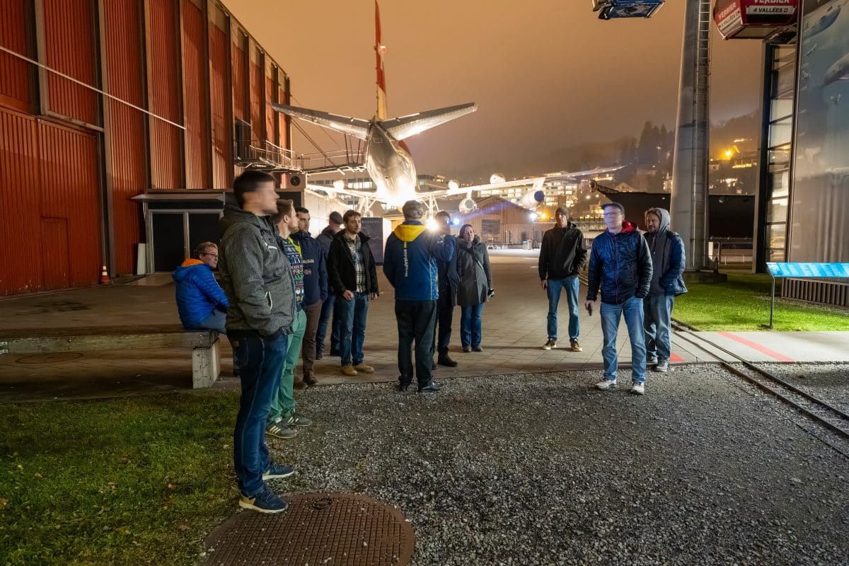 Der Abend startete im Verkehrshaus der Schweiz, wo wir zu einem festlichen Apéro empfangen wurden. Das Verkehrshaus ist für seine faszinierenden Ausstellungen zur Geschichte der Verkehrstechnik bekannt. Wir nahmen an einer exklusiven Führung teil, bei der wir mit Taschenlampen ausgestattet durch das Museum gingen. Kompetente Guides führten die Gruppen durch die Ausstellungen, erklärten spannende Details und sorgten mit eindrucksvollen Geschichten für zusätzlichen Tiefgang.